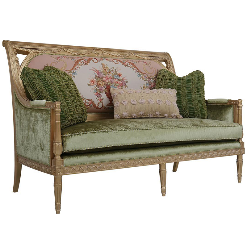 Chic Forest Green Carved French Classic Sofa for Elegant Interiors