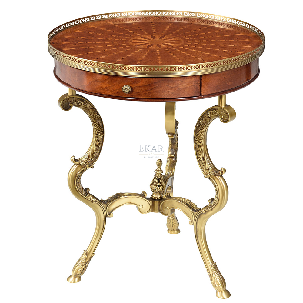 This round side table from Ekar Furniture brings classic beauty to any room, crafted from premium wood with elegant carved details.