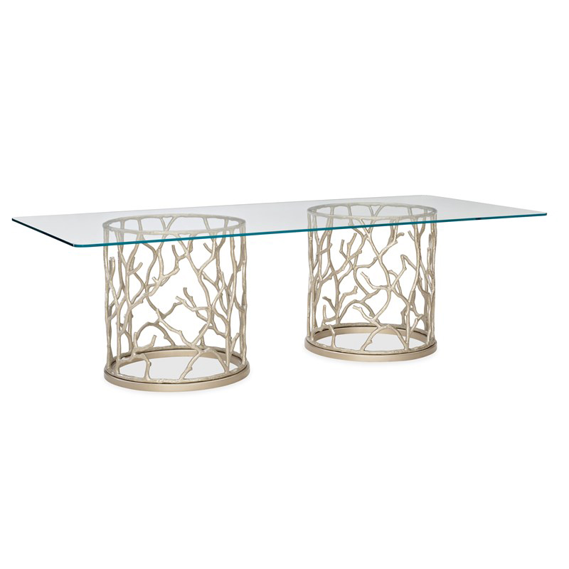 Classic smooth glass top and metal legs dining table