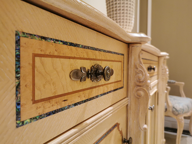 Ekar Bedroom Furniture Solid Wood Inlaid Patchwork Four-Drawer Cabinet