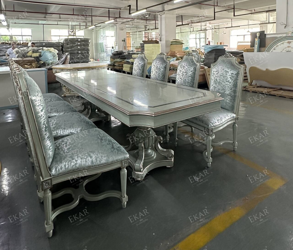 Enhance your dining experience with this sophisticated French-style dining table, featuring a luxurious design and sturdy construction.