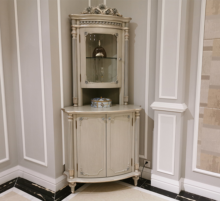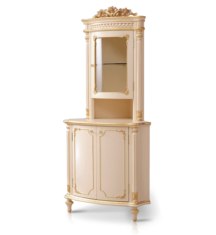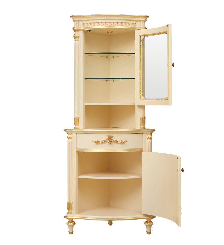 Elegant Ivory White Corner Curio Cabinet/Storage Cupboard
