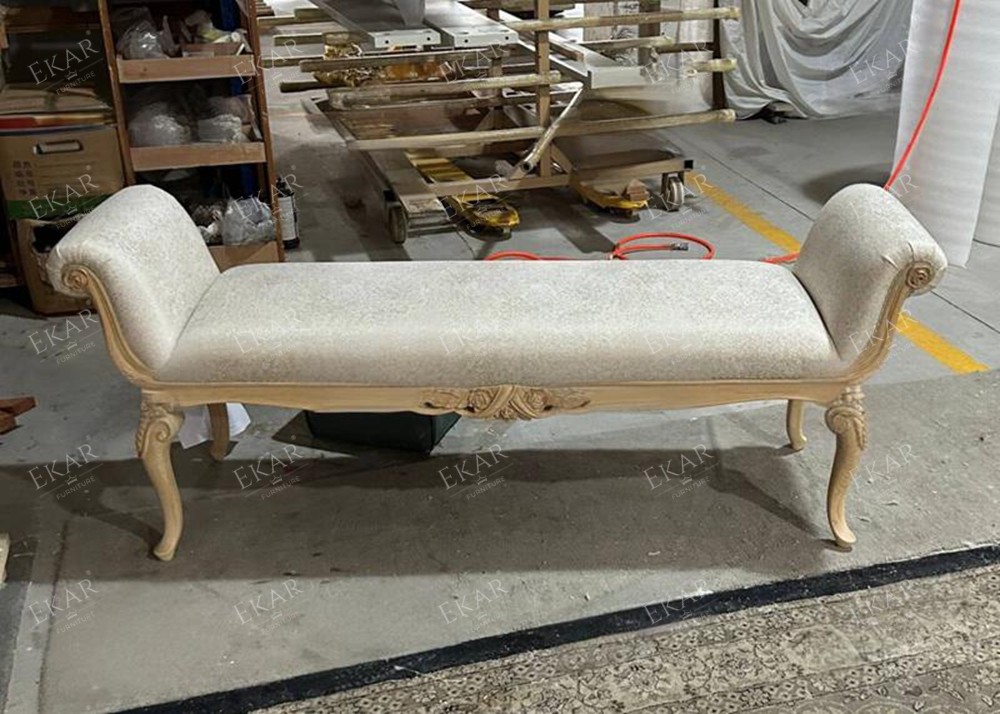 Fabric Ash Wood Bench Bedroom Ottoman