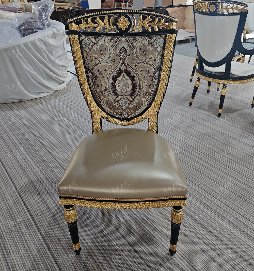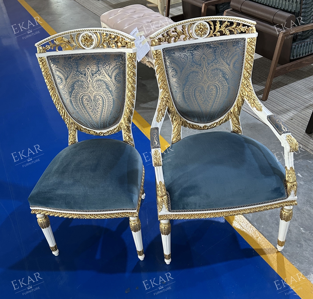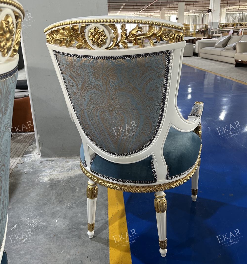 French Classical Dining Chair with Solid Wood and Upholstered Fabric for Dining Rooms