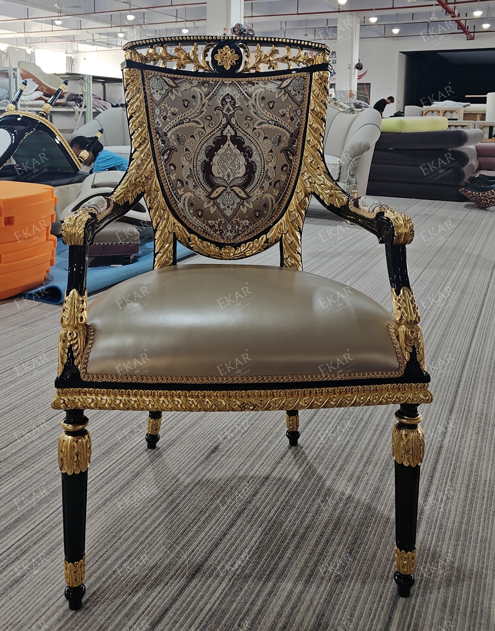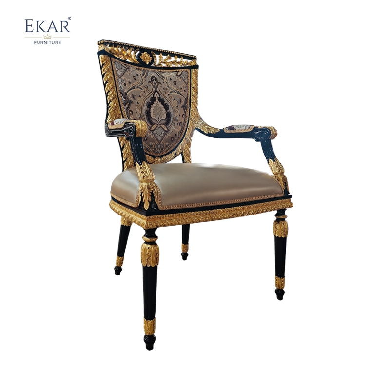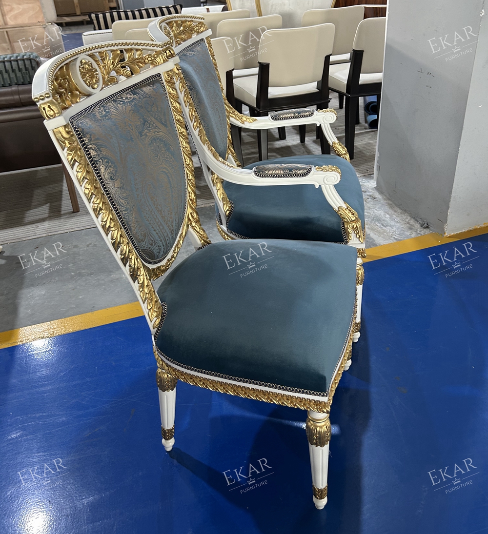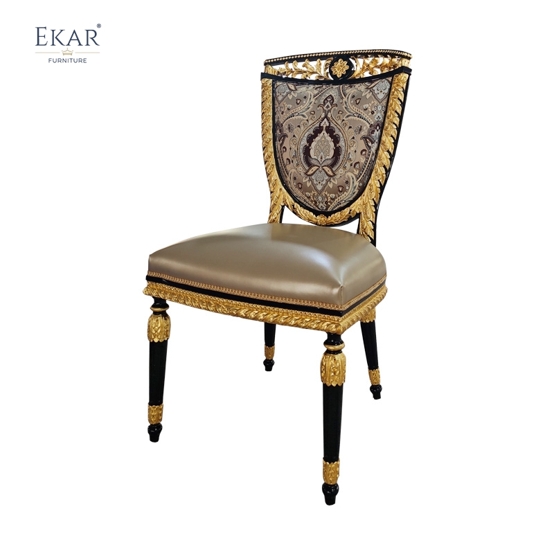 French Classical Dining Chair with Solid Wood and Upholstered Fabric for Dining Rooms