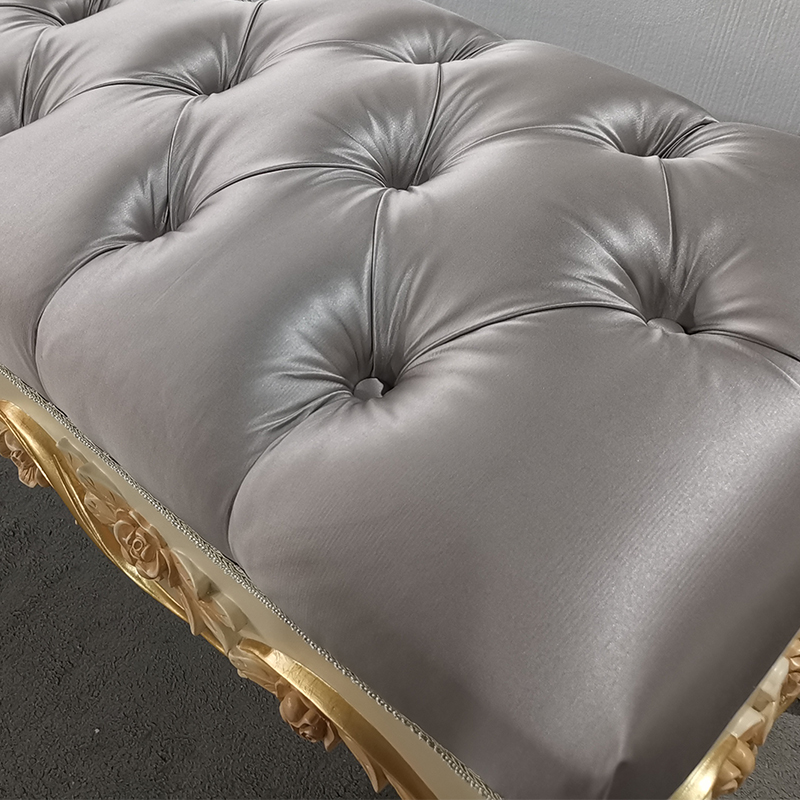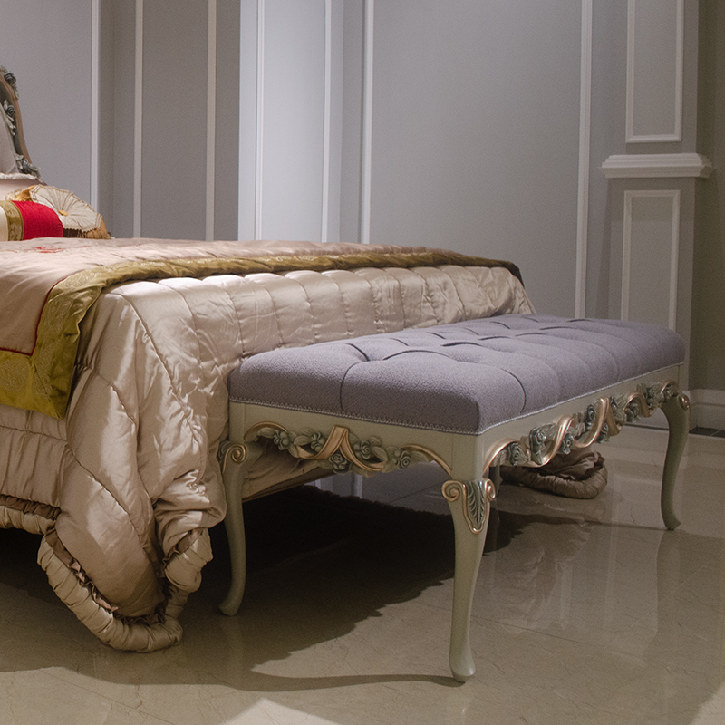 French Luxury Style Grey Wooden and Fabric Long Bed Stool for Bedroom