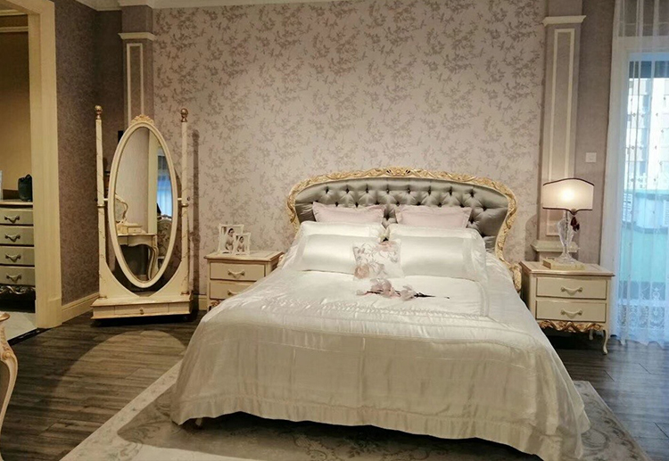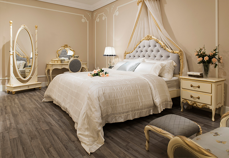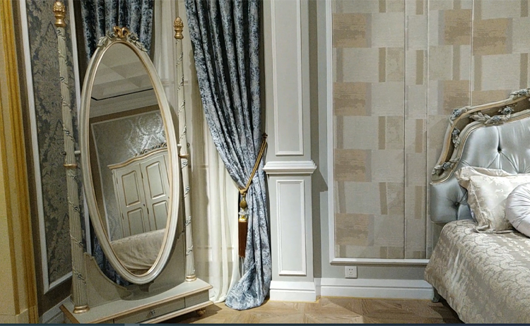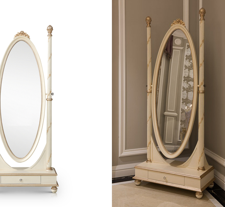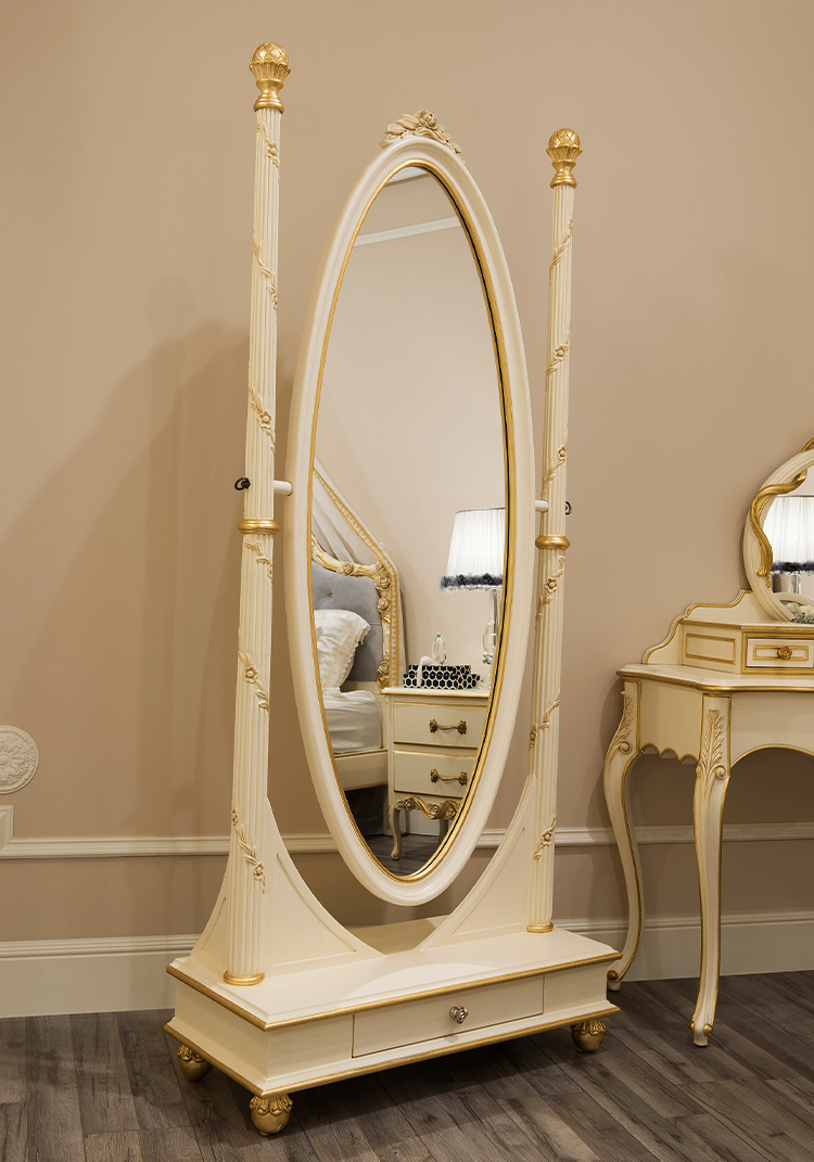 French Style Bedroom Dressing Mirror with Carved Wood Frame and Swivel Design