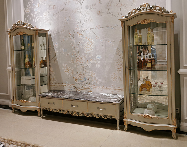 French Style Glass Display Wine Cabinet for Living Room or Dining Room