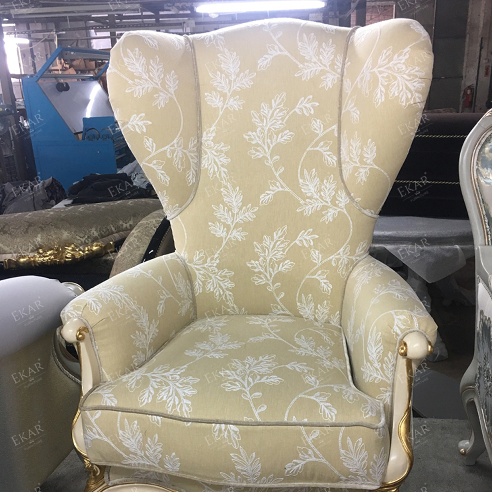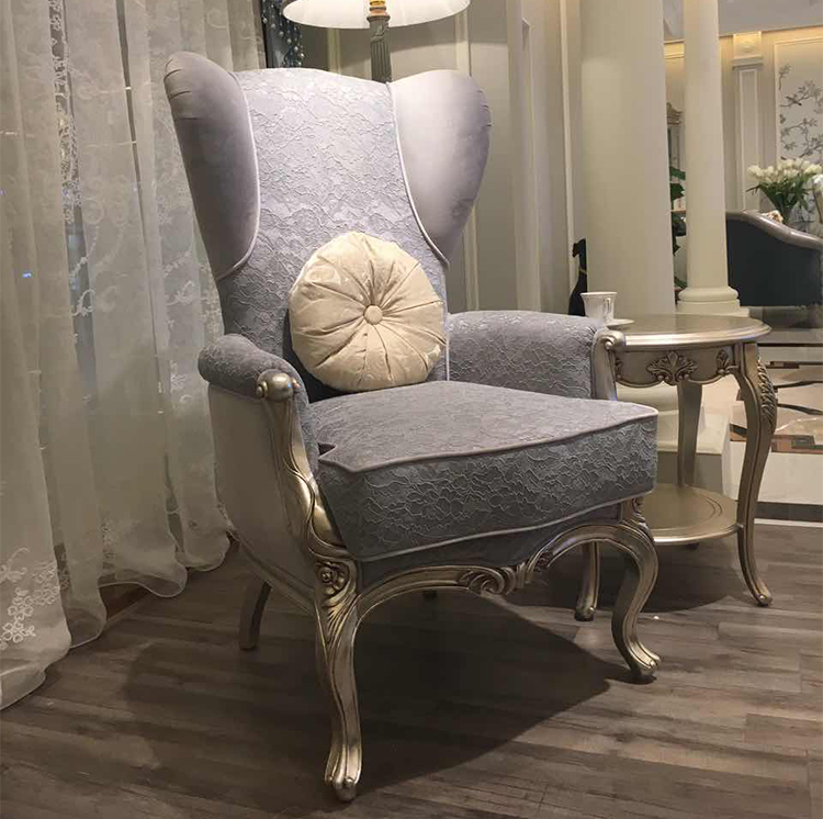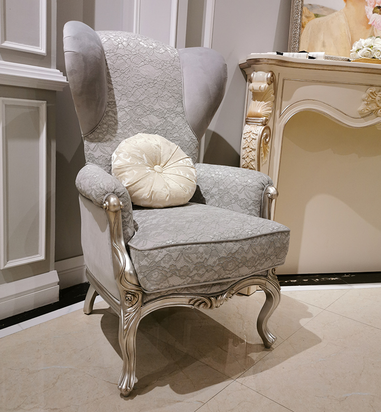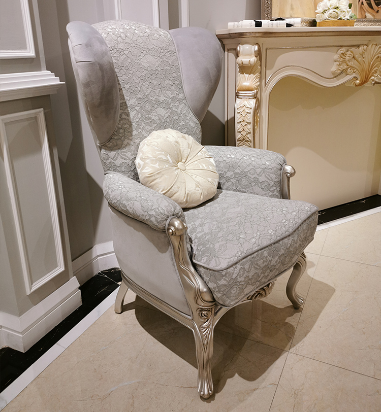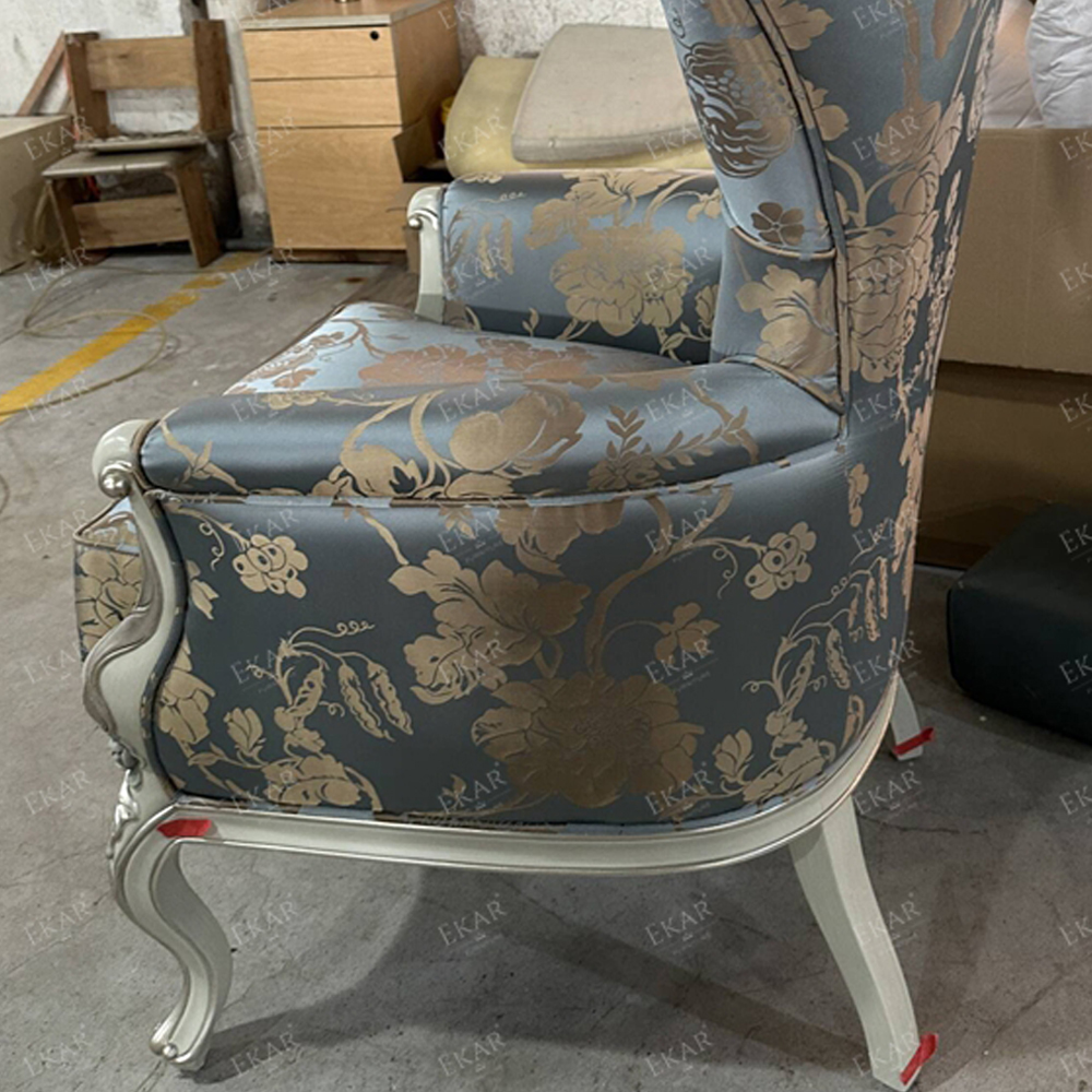 French Style Wooden Lounge Chair with Upholstered Fabric Seat
