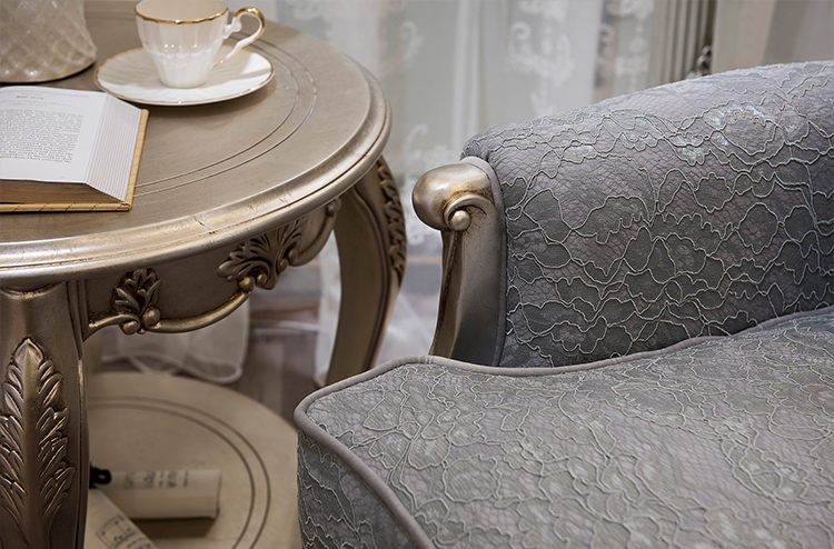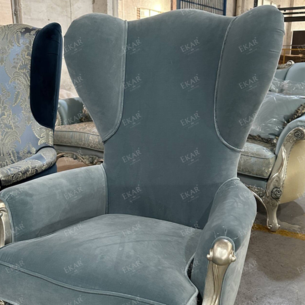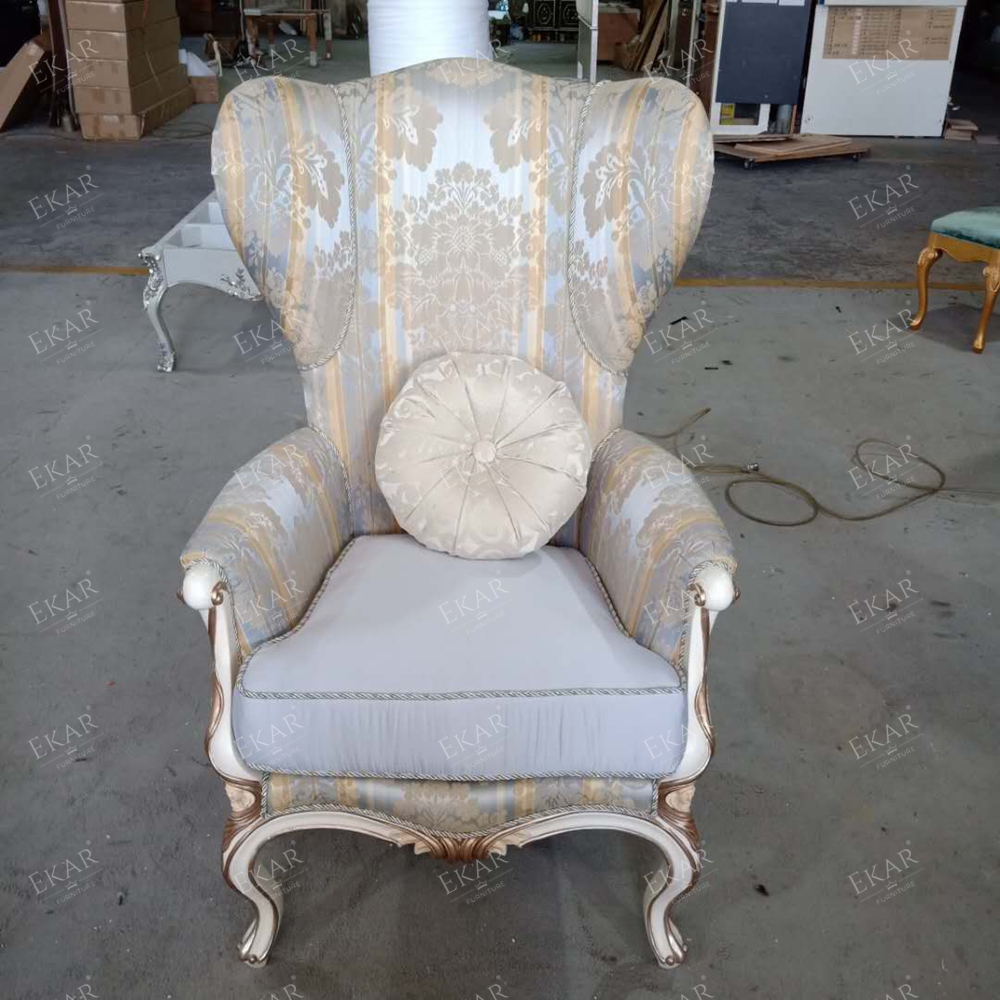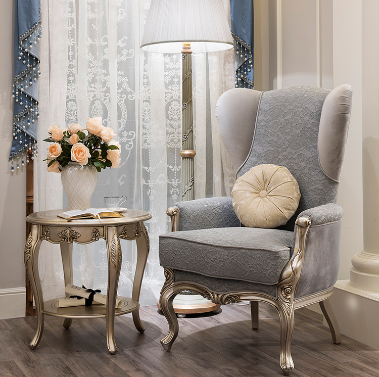 French Style Wooden Lounge Chair with Upholstered Fabric Seat