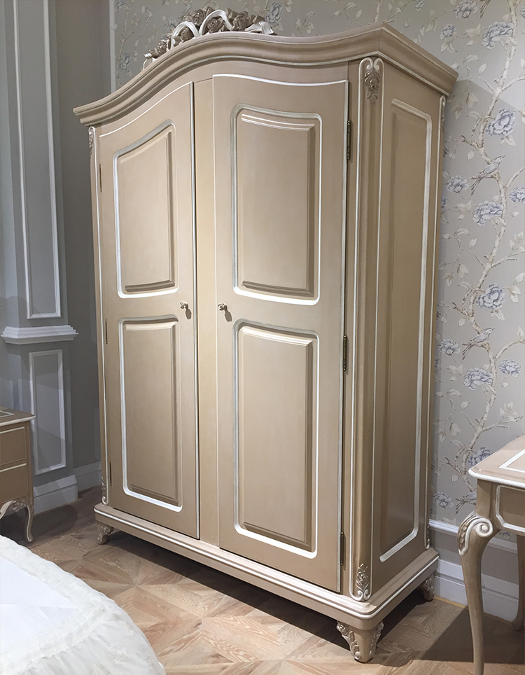 French Style Wooden Wardrobe with Carved Details and Spacious Storage