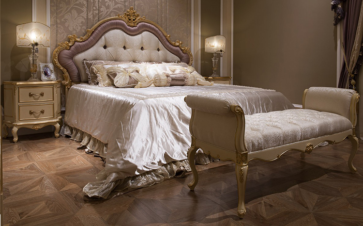 Fancy Soild Wood White Fabric Upholstered Headboards Beds