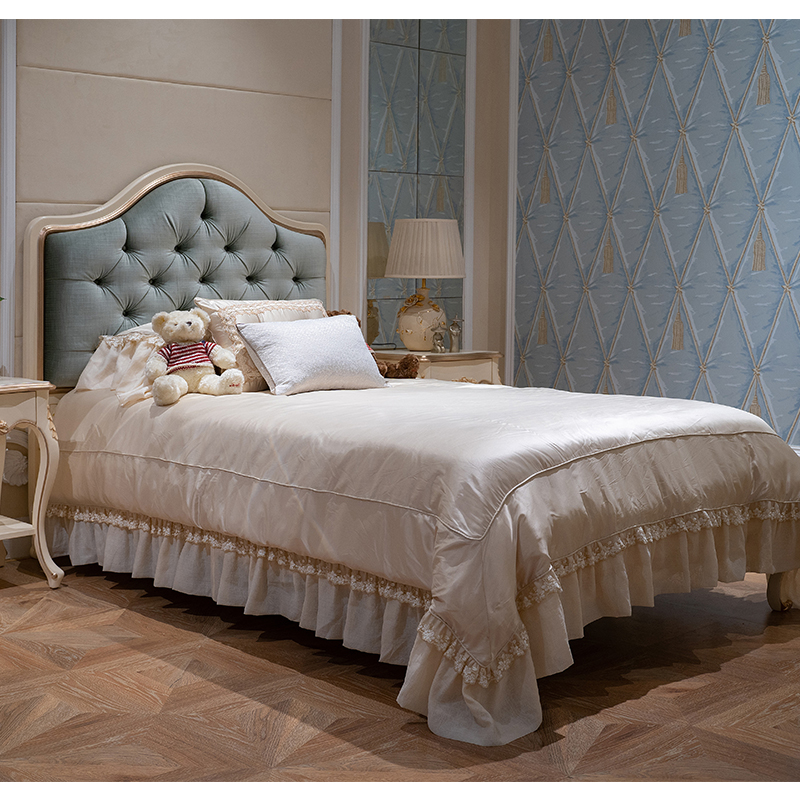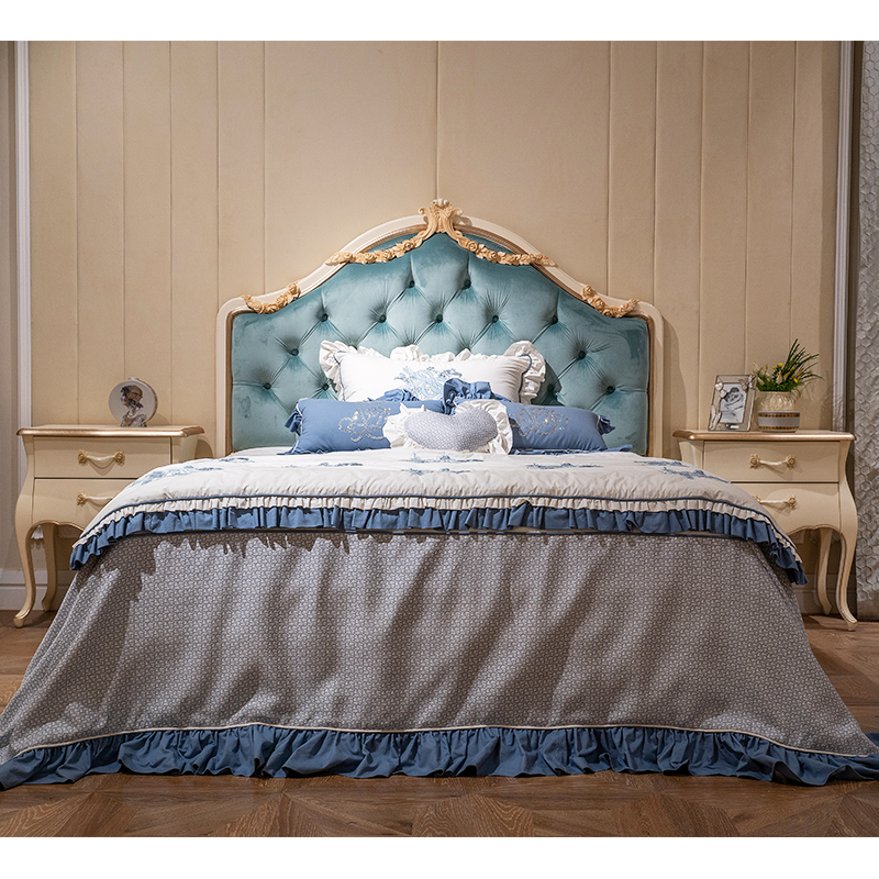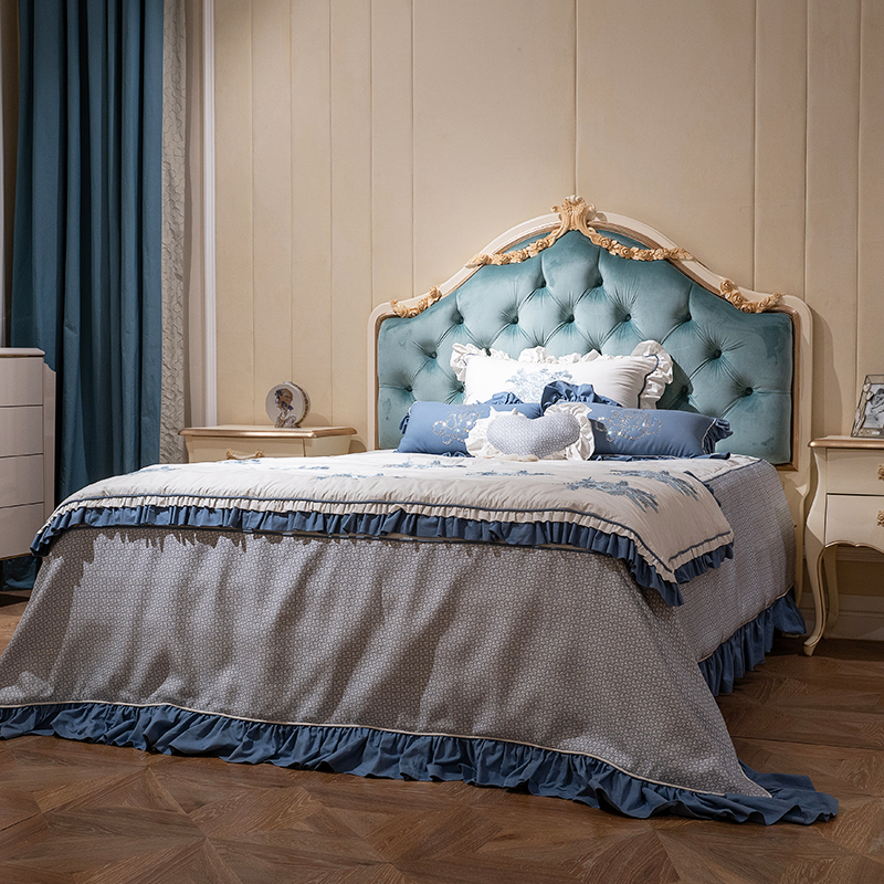 King Size Blue Tufted Upholstered Headboard Single Bed Frame